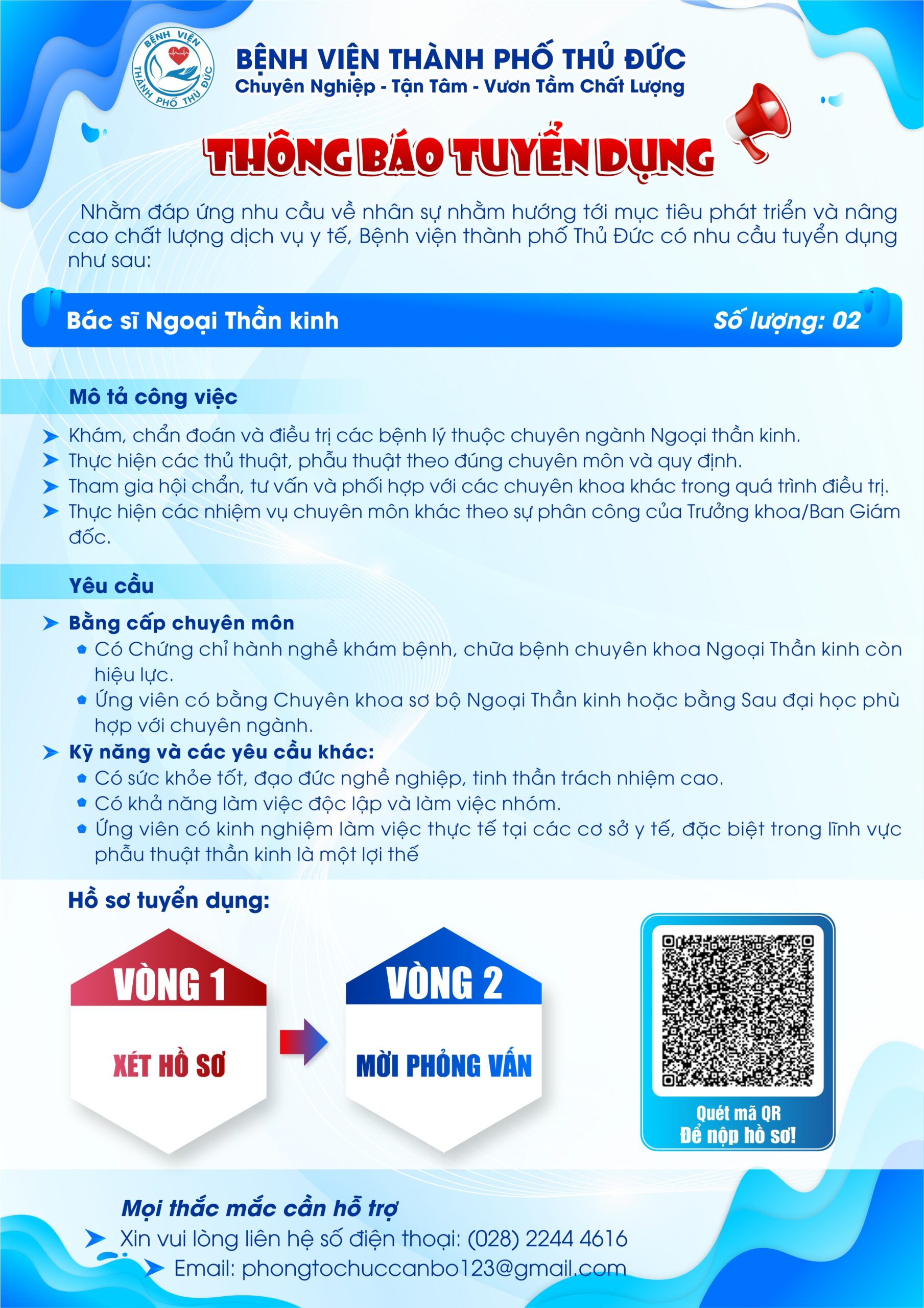 Vị trí trí tuyển dụng: Bác sĩ Ngoại Thần Kinh
