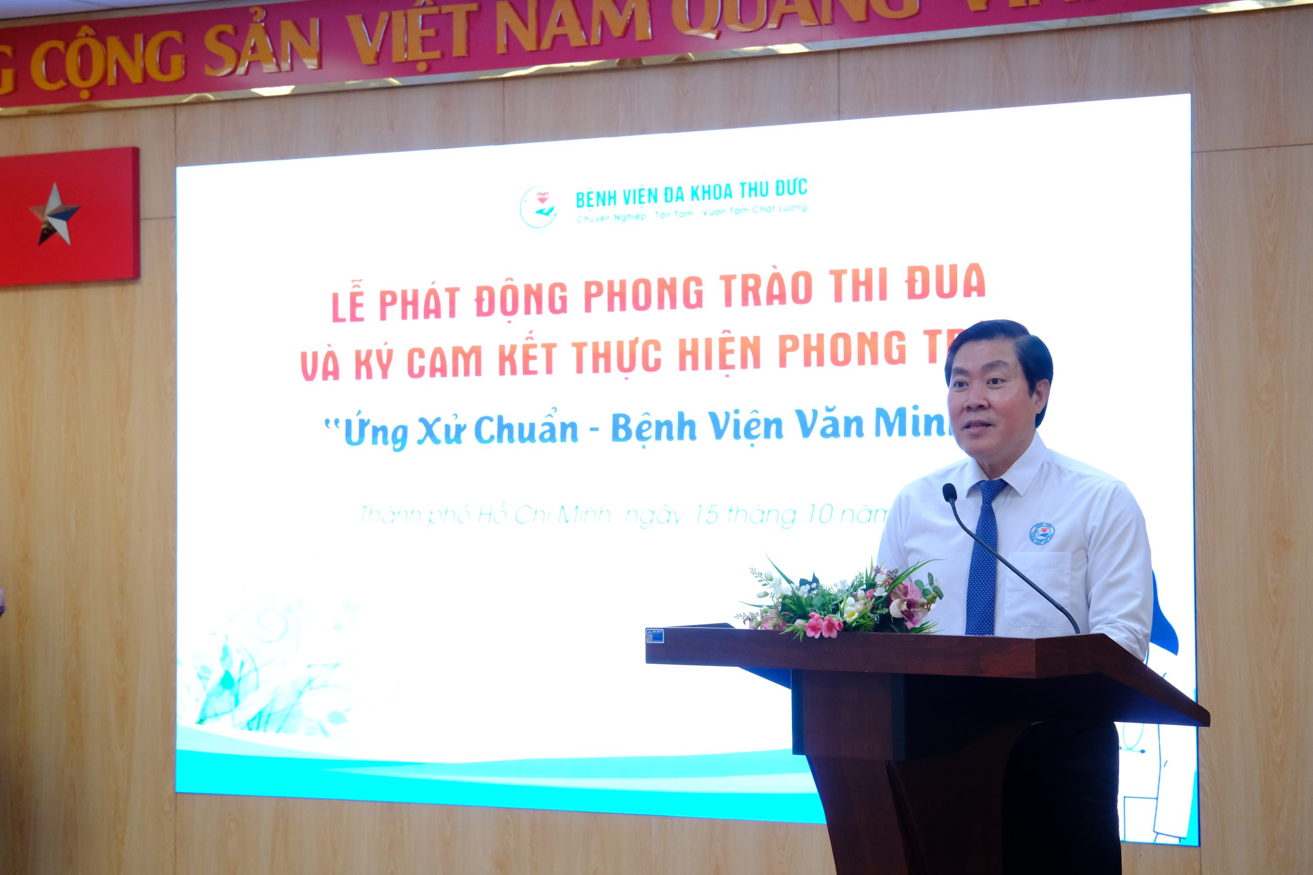 Chiều ngày 15/10/2025, Bệnh viện Đa khoa Thủ Đức đã tổ chức chương trình phát động phong trào thi đua và ký cam kết thực hiện phong trào “Ứng xử chuẩn – Bệnh viện văn minh” với chủ đề “Nụ cười từ tâm, nâng tầm y đức”. Đây là một bước đi chiến lược nhằm nâng cao chất lượng phục vụ và văn hóa ứng xử trong toàn bệnh viện.
