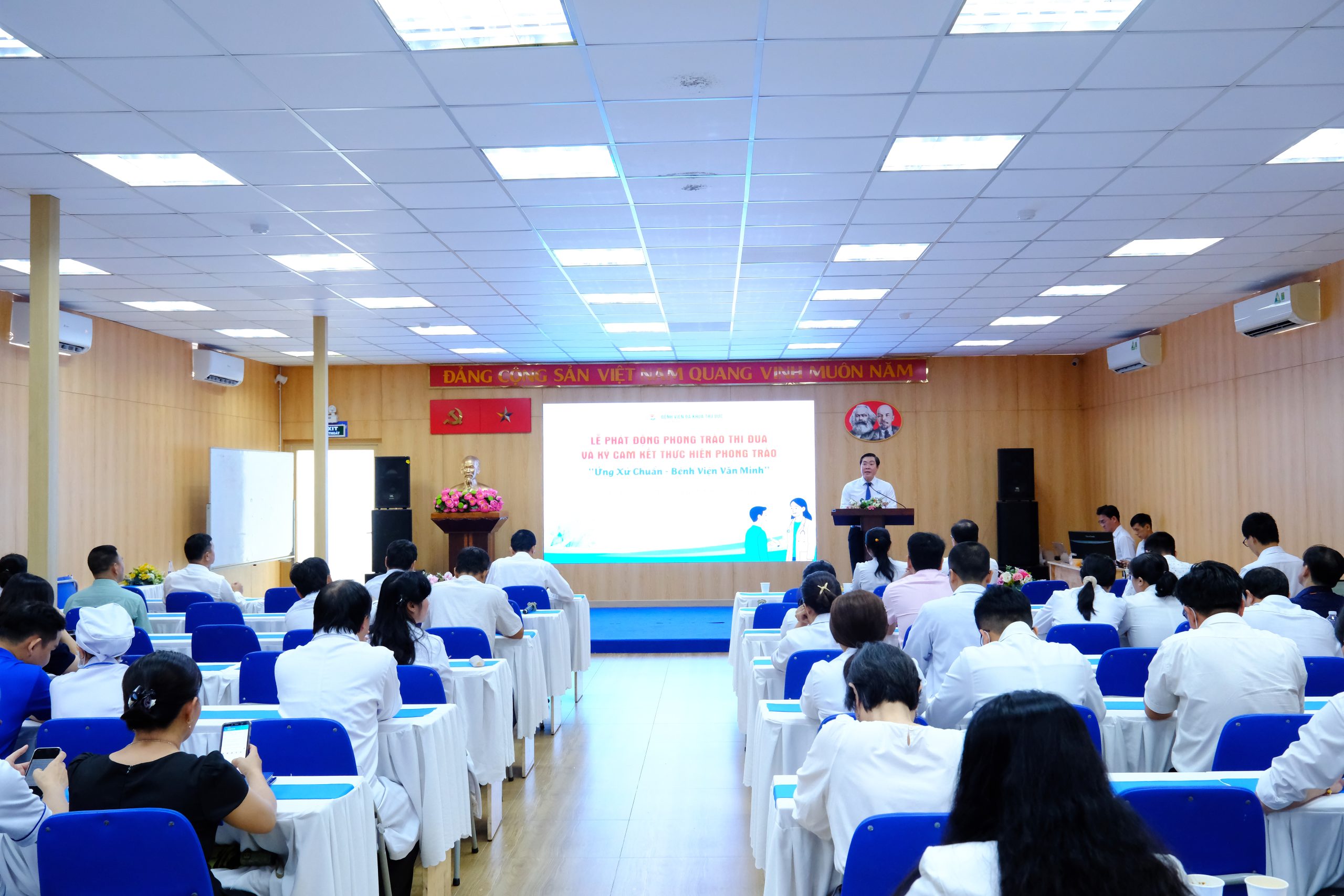 Phát biểu tại buổi lễ, TS.BSCKII Vũ Trí Thanh – Bí thư Đảng ủy, Giám đốc Bệnh viện nhấn mạnh: “Mặc dù trong những năm qua, Bệnh viện đã đạt được nhiều thành tựu về chuyên môn và kỹ thuật cao, nhưng để thực sự trở thành địa chỉ y tế tin cậy hàng đầu, việc nâng cao văn hóa phục vụ và chất lượng giao tiếp ứng xử là yêu cầu cấp thiết. Theo đó, mỗi cử chỉ ân cần, mỗi lời giải thích cặn kẽ, hay một nụ cười thân thiện đều có thể góp phần xoa dịu nỗi đau và tăng thêm niềm tin cho người bệnh.”