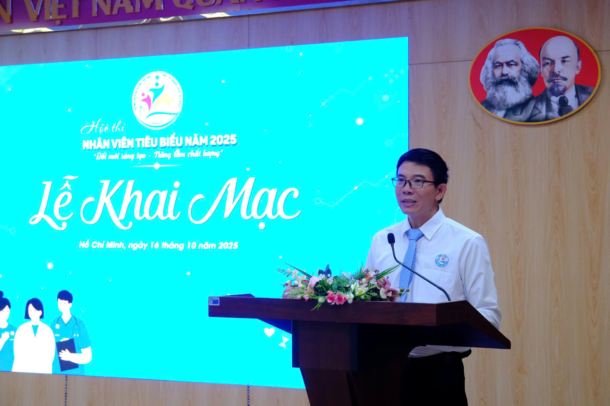 Tiếp nối chương trình, TS.BSCKII Trần Nguyễn Ái Thanh – Ủy viên Ban Thường vụ Đảng ủy, Phó Giám đốc Bệnh viện, Phó Trưởng Ban Chỉ đạo Hội thi, đã công bố Logo – biểu trưng chính thức của Hội thi “Nhân viên tiêu biểu năm 2025”, biểu tượng cho tinh thần cống hiến và khát vọng vươn lên không ngừng của tập thể Bệnh viện Đa khoa Thủ Đức.