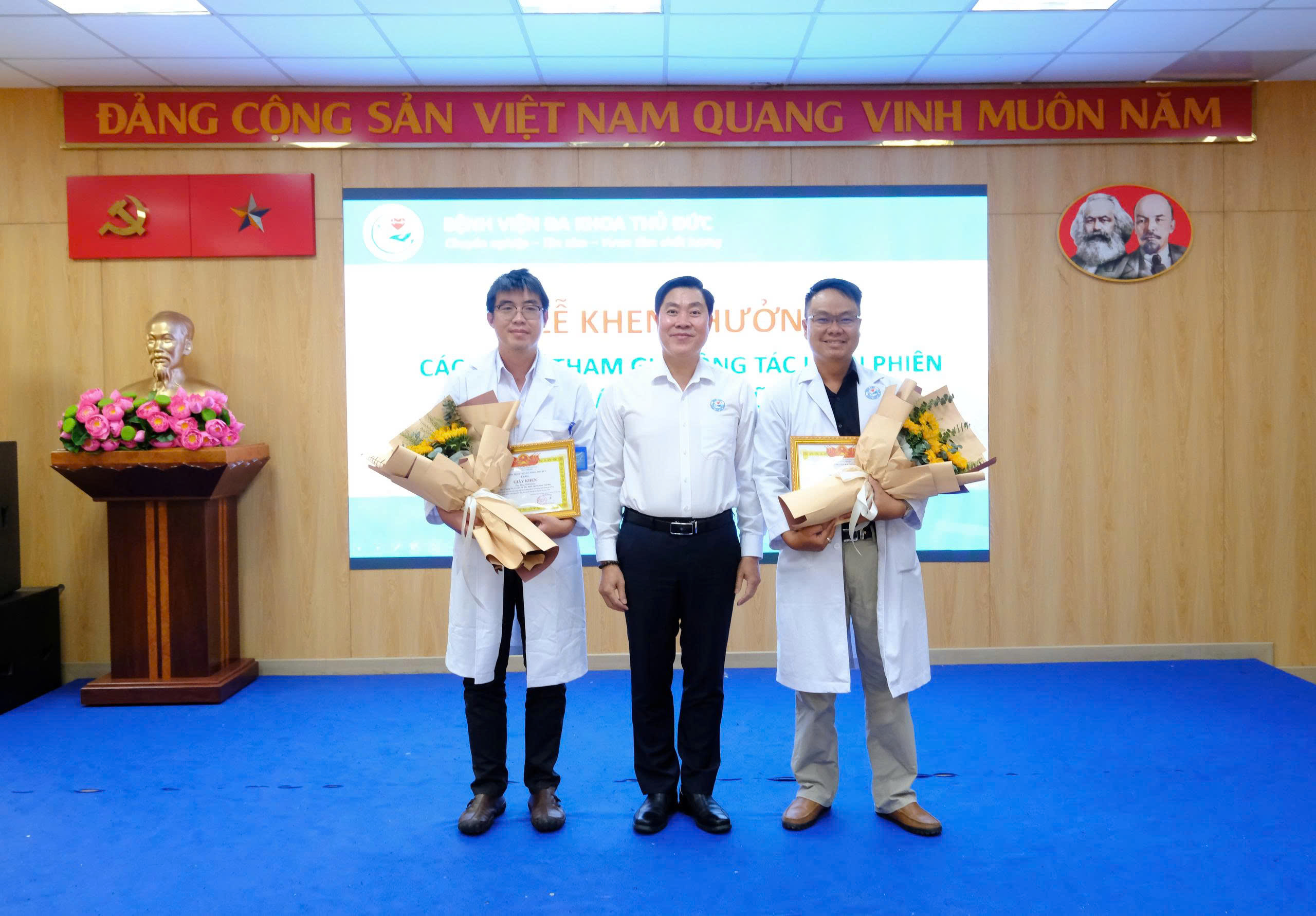 Chiều nay, tại Bệnh viện Đa khoa Thủ Đức, TS.BS Vũ Trí Thanh – Bí thư Đảng ủy, Giám đốc Bệnh viện đã tuyên dương và trao Giấy khen cho 02 bác sĩ có nhiều cống hiến trong quá trình thực hiện nhiệm vụ chuyên môn tại xã Thạnh An, huyện Cần Giờ, góp phần nâng cao chất lượng chăm sóc sức khỏe cho người dân vùng đảo còn nhiều khó khăn.