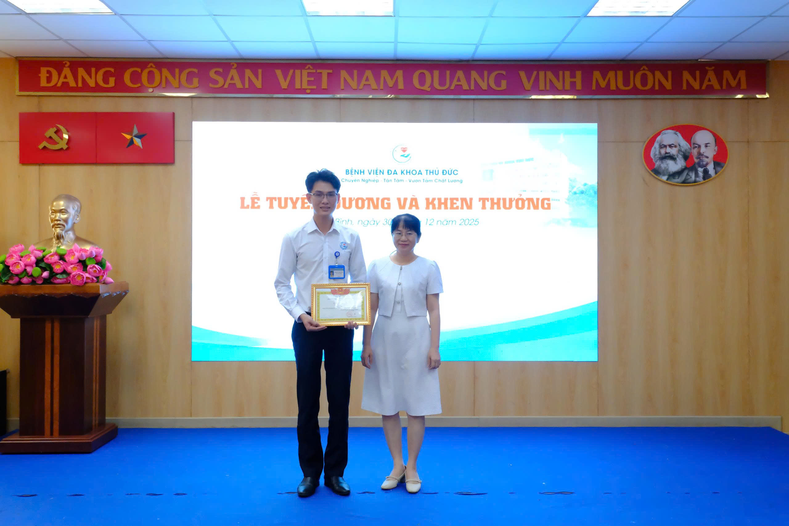 Chiều ngày 30/12/2025, Bệnh viện Đa khoa Thủ Đức đã tổ chức Lễ công bố quyết định bổ nhiệm và khen thưởng các tập thể, cá nhân có thành tích xuất sắc trong hoạt động công tác xã hội và các phong trào thi đua tại đơn vị.