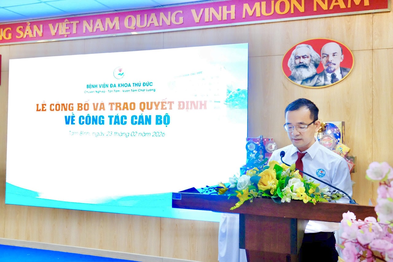 Sáng ngày 23/02/2026, trong ngày đầu tiên đi làm sau Tết Nguyên đán, Bệnh viện Đa khoa Thủ Đức đã tổ chức Lễ công bố và trao quyết định về công tác cán bộ.