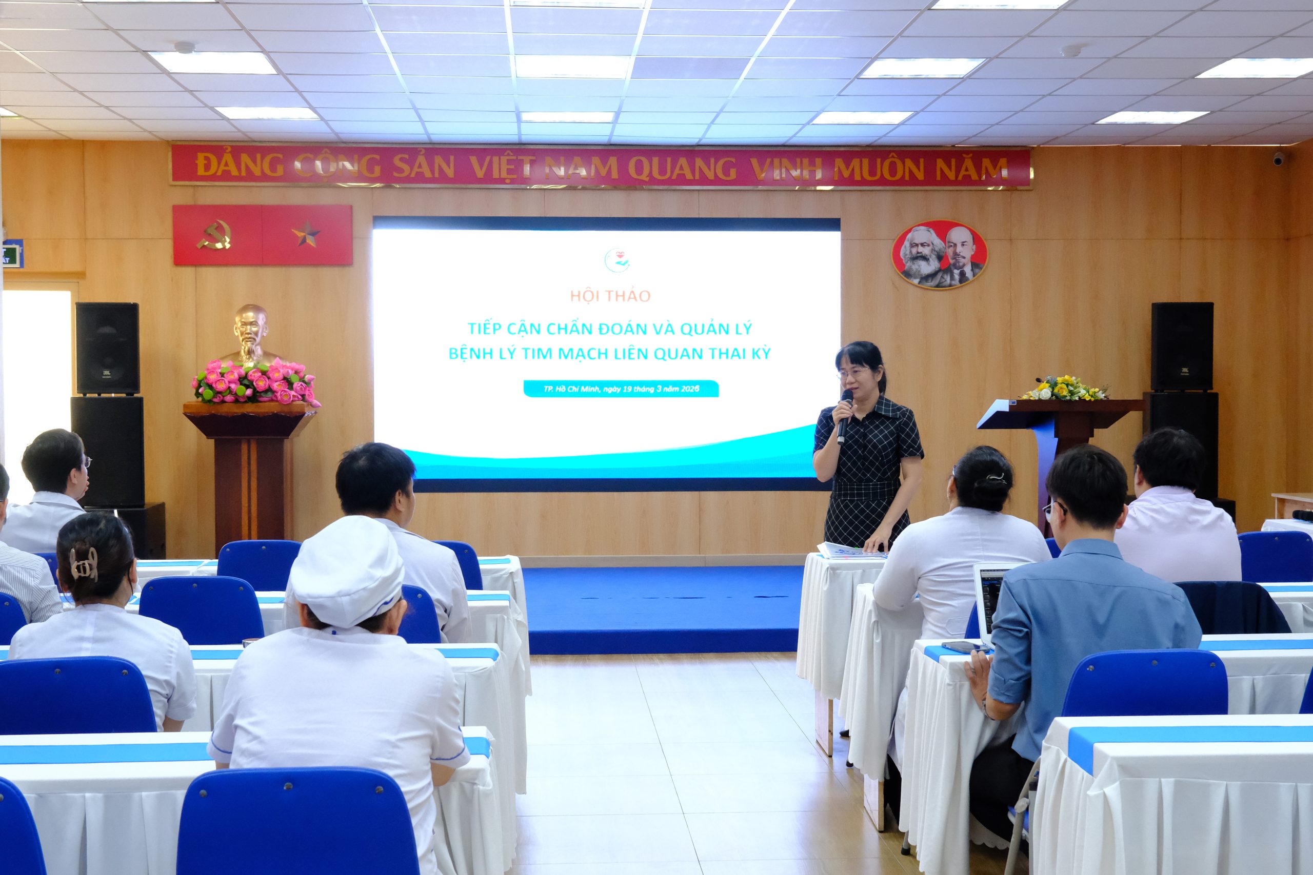 Chiều ngày 19/03/2026, Bệnh viện Đa khoa Thủ Đức đã tổ chức hội thảo khoa học với chủ đề “Tiếp cận chẩn đoán và quản lý bệnh lý tim mạch liên quan thai kỳ”. Chương trình do TS.BSCKII Trần Nguyễn Ái Thanh – Phó Giám đốc Bệnh viện chủ trì, với sự tham dự của đông đảo bác sĩ và nhân viên y tế.