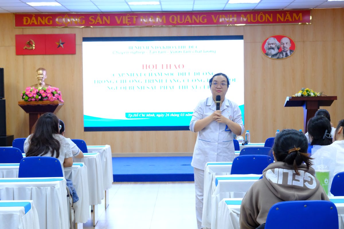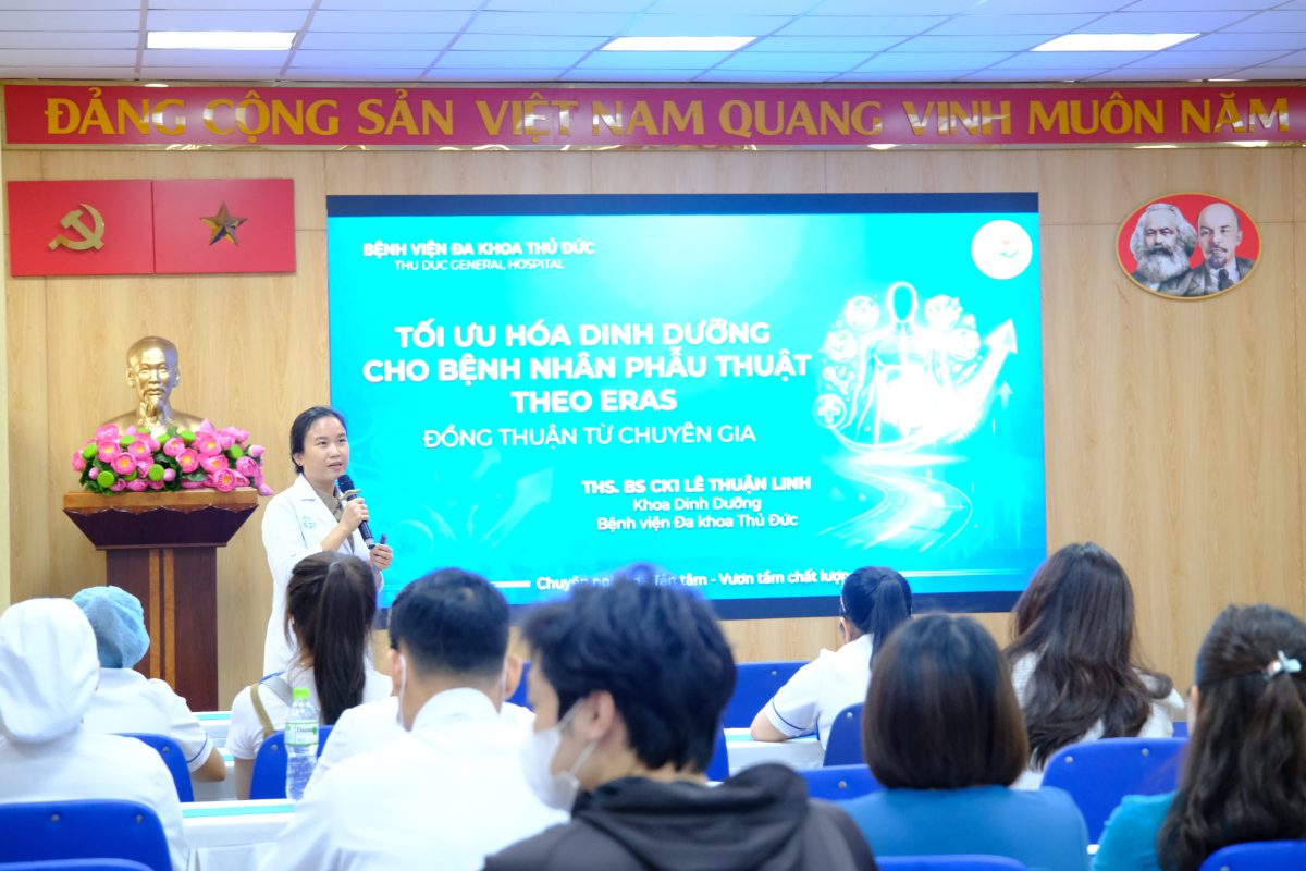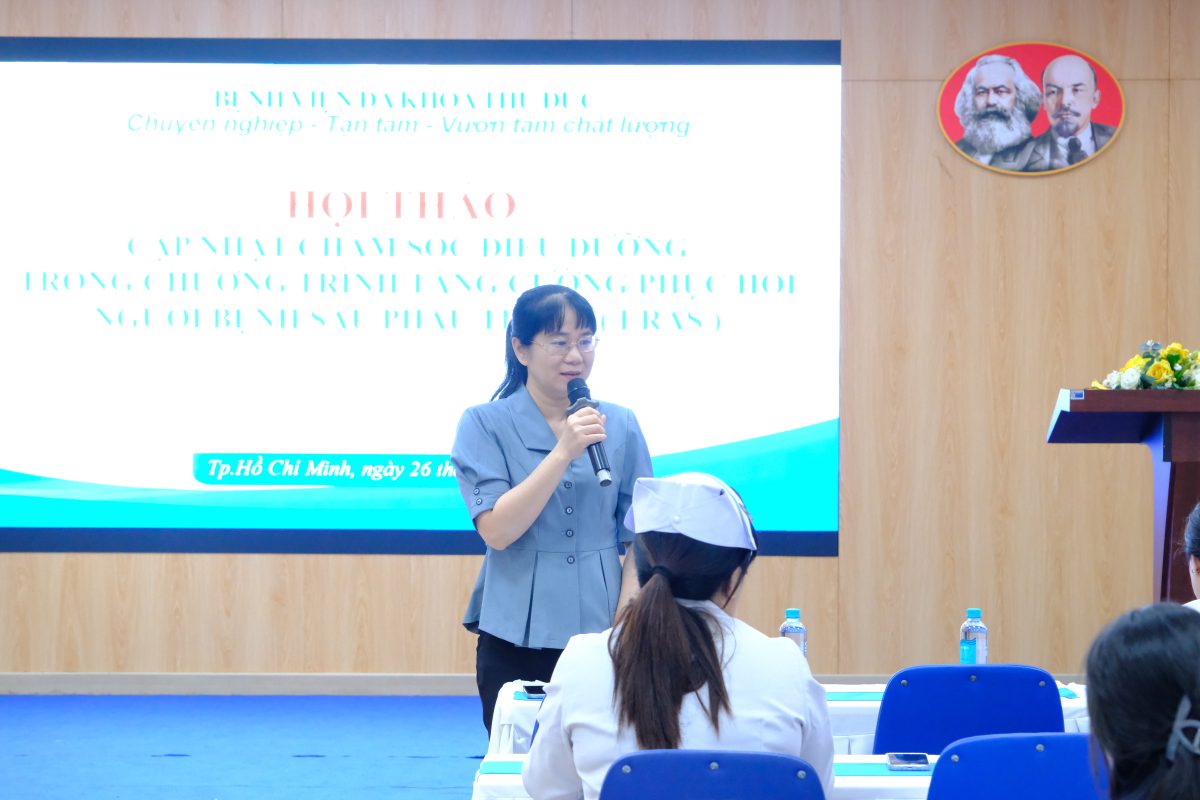Hội thảo là một trong những hoạt động chuyên môn thường quy tại Bệnh viện Đa khoa Thủ Đức. Việc thường xuyên cập nhật kiến thức về quản lý đau đa mô thức, tối ưu hóa dinh dưỡng và hướng dẫn vận động sớm là những yếu tố then chốt nhằm nâng cao chất lượng chăm sóc, rút ngắn thời gian nằm viện và cải thiện trải nghiệm điều trị cho người bệnh. Thành công của ERAS cũng phụ thuộc trực tiếp vào năng lực đánh giá, tư vấn giáo dục sức khỏe và theo dõi sát sao của đội ngũ điều dưỡng lâm sàng.