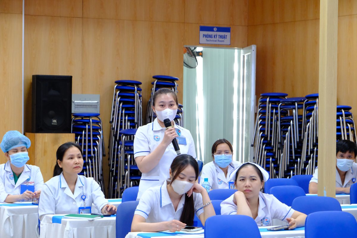 Phần thảo luận diễn ra sôi nổi với nhiều ý kiến trao đổi xoay quanh việc chuẩn hóa chăm sóc dinh dưỡng, lựa chọn giải pháp phù hợp theo từng giai đoạn trước, trong và sau phẫu thuật, cũng như hướng dẫn vận động sớm bảo đảm an toàn, hiệu quả và phù hợp từng mục tiêu cùng với từng tình trạng người bệnh.