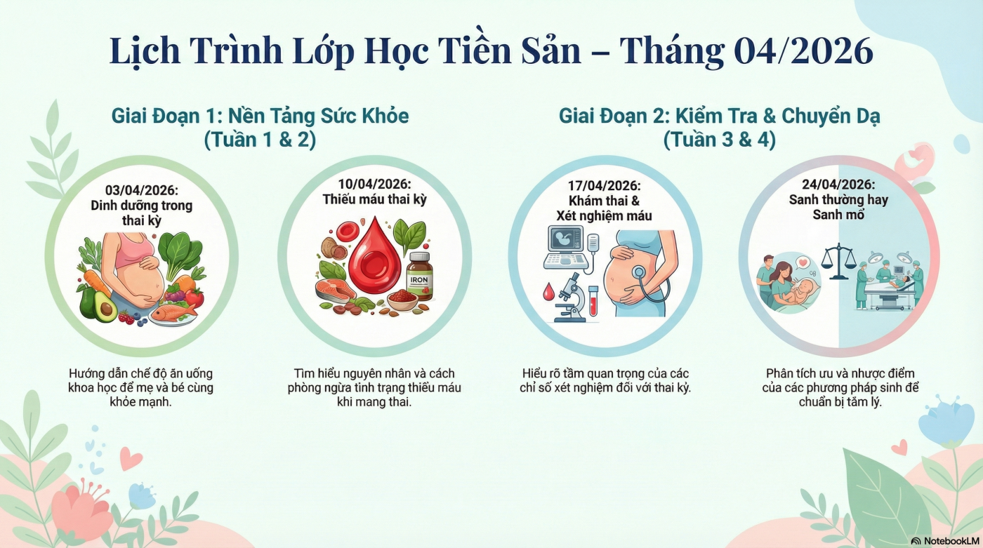 - Tuần 3 (17/04): Lợi ích của việc khám thai & tầm quan trọng của xét nghiệm máu.