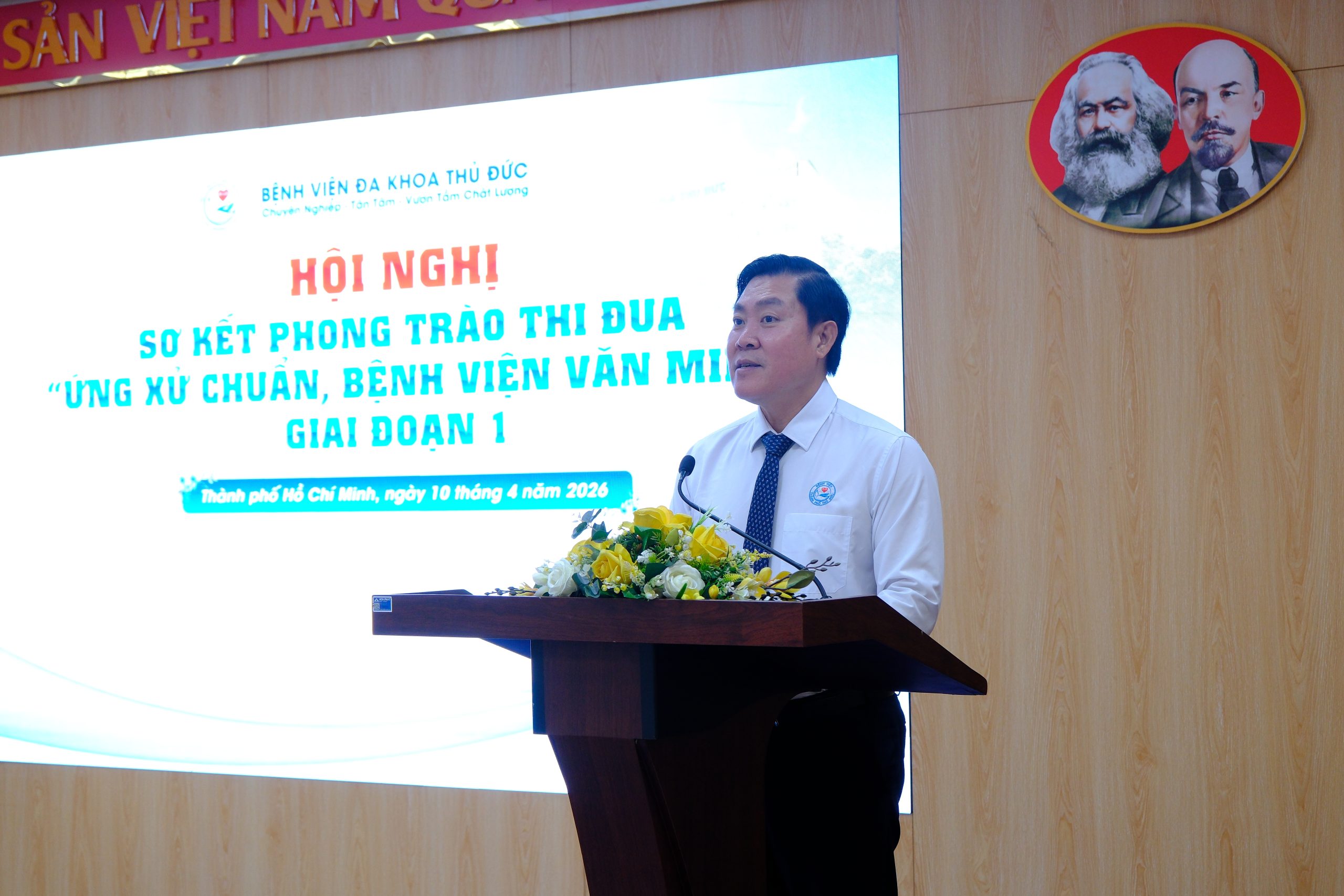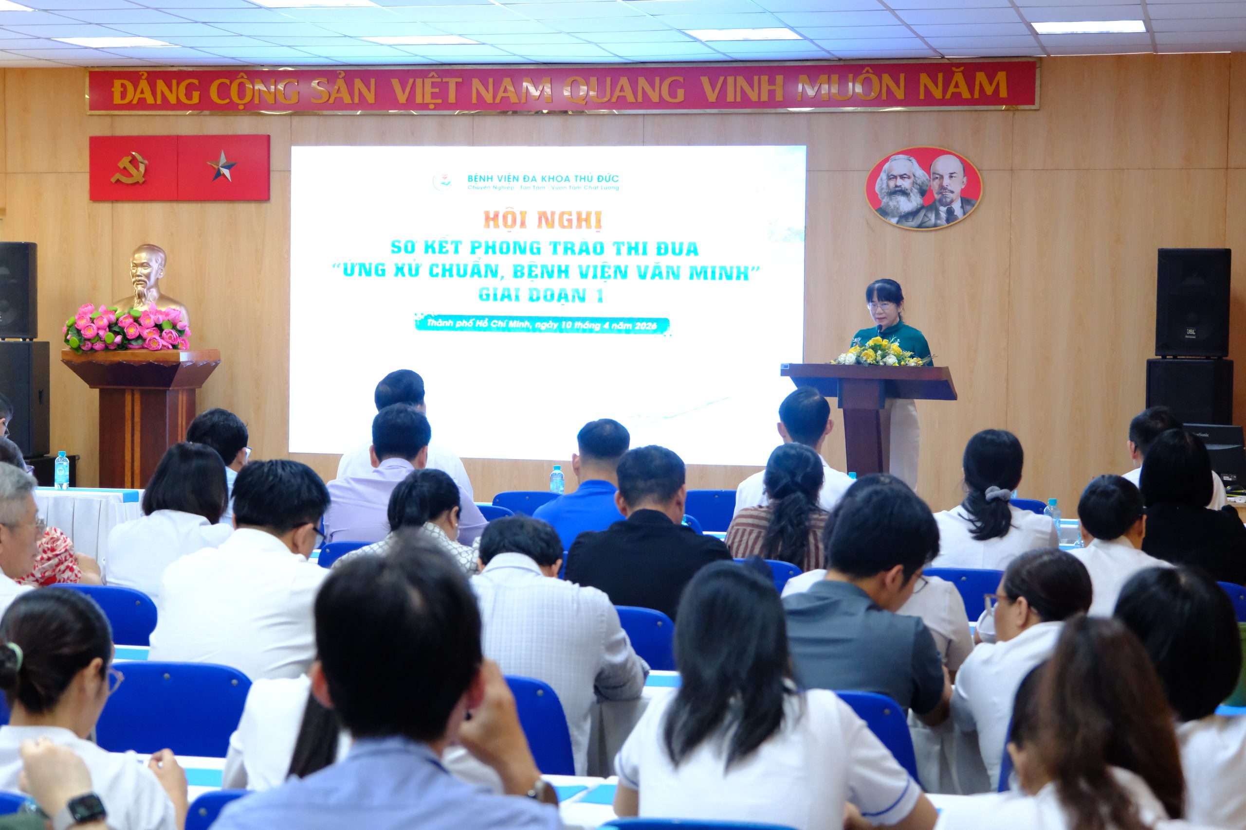 Chiều ngày 10/4/2026, Bệnh viện Đa khoa Thủ Đức tổ chức Hội nghị sơ kết phong trào thi đua “Ứng xử chuẩn – Bệnh viện văn minh” giai đoạn 1, nhằm đánh giá kết quả sau 6 tháng triển khai và đề ra nhiệm vụ cho thời gian tới.
