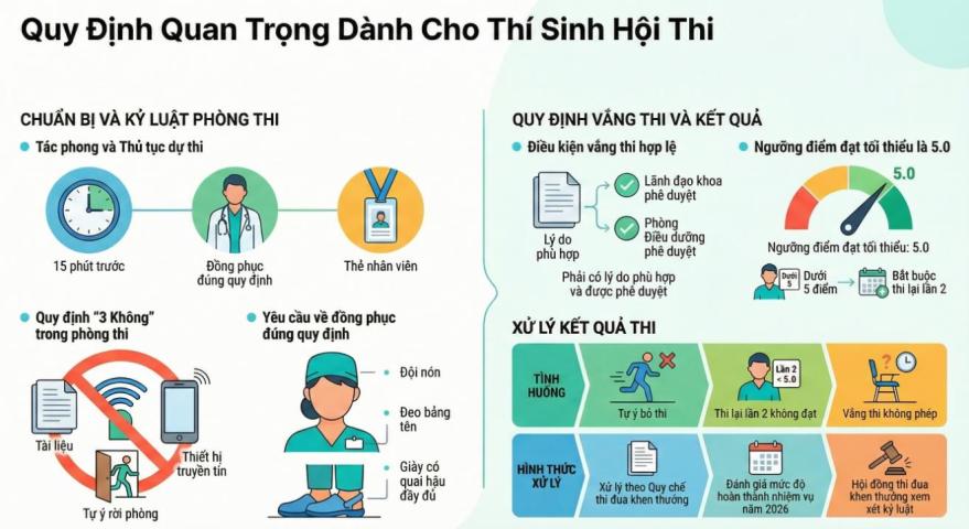 📌 Lưu ý cực quan trọng cho các thí sinh: Hãy nhớ có mặt trước 15 phút, mặc đúng đồng phục chuyên môn (đội nón, đeo bảng tên, mang giày có quai hậu) và đừng quên mang theo thẻ nhân viên/giấy tờ tùy thân nhé.
