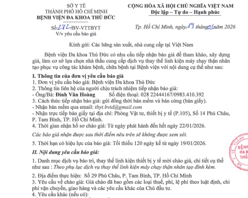 Thông tin hành chính: Tên đơn vị đăng ký : BỆNH VIỆN ĐA KHOA THỦ [...]