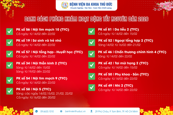 Thông báo danh sách phòng khám hoạt động Tết Nguyên Đán 2026