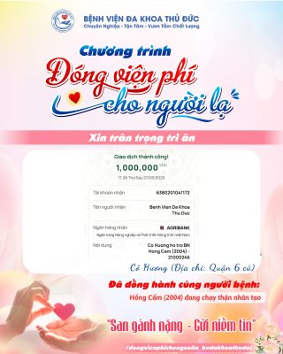 Bệnh viện Đa khoa Thủ Đức xin chân thành cảm ơn Cô Hương (Địa chỉ: [...]